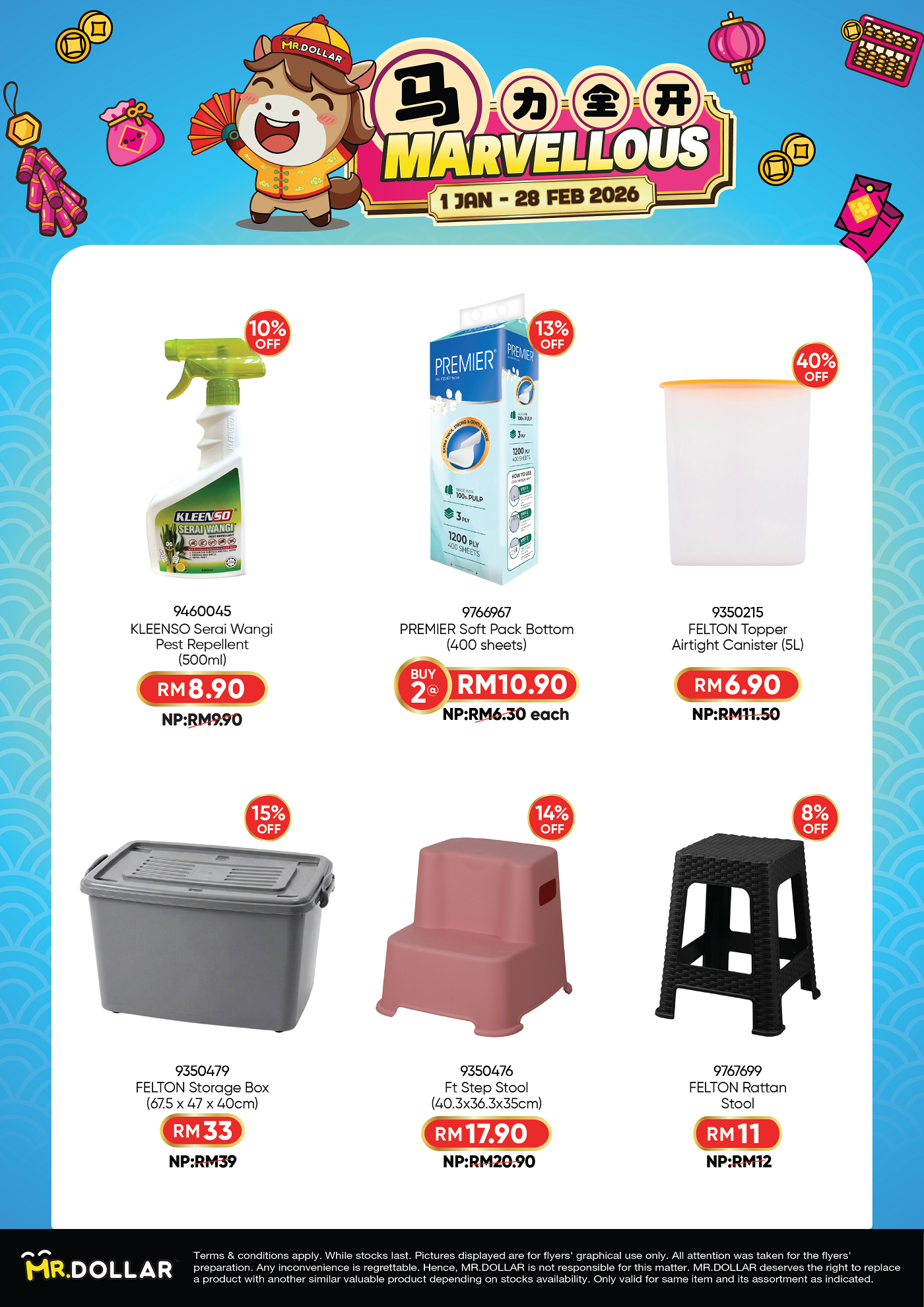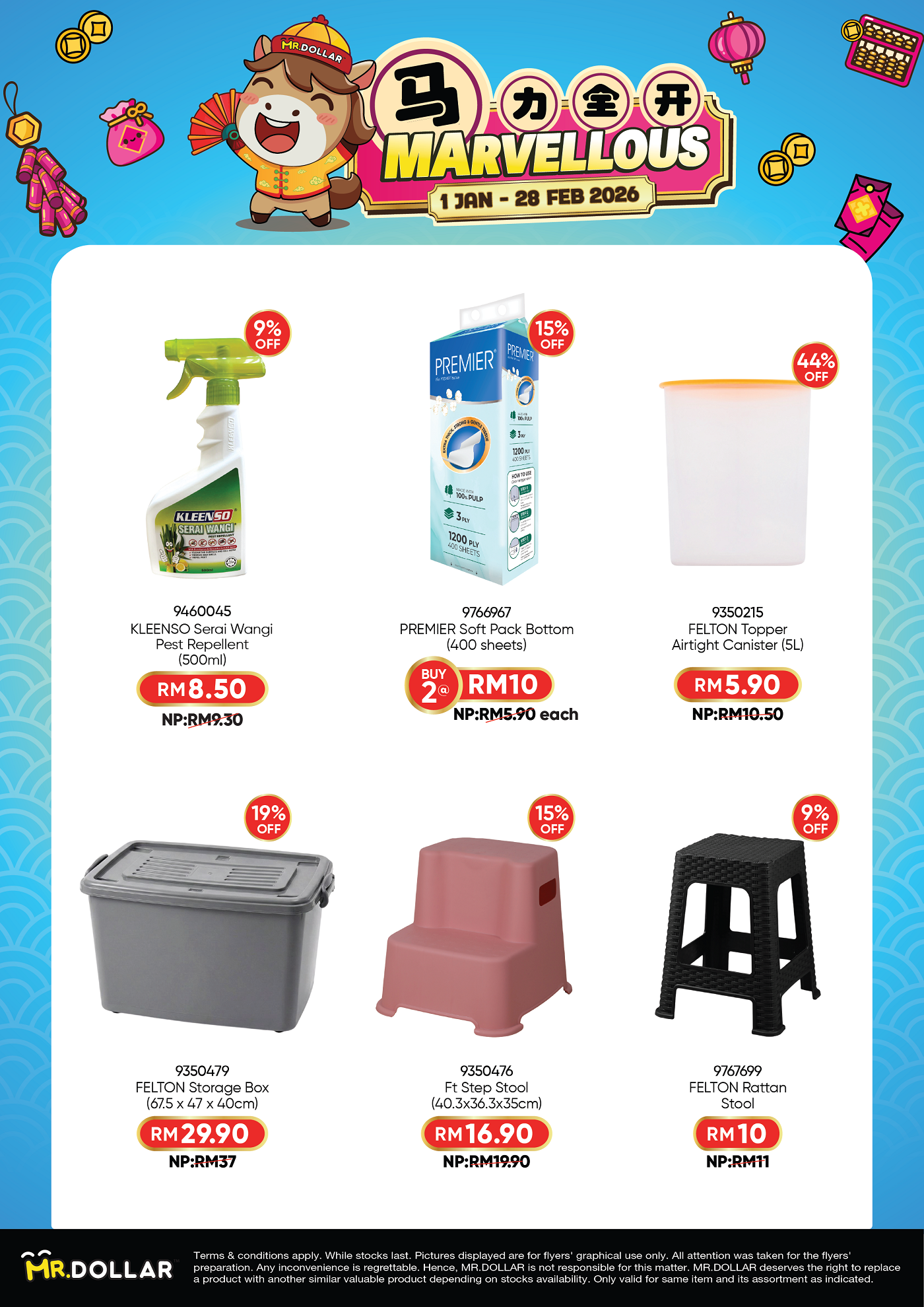 Celebrate smart savings with MR.DOLLAR Marvellous CNY Deals, featuring great value everyday essentials at unbeatable prices.