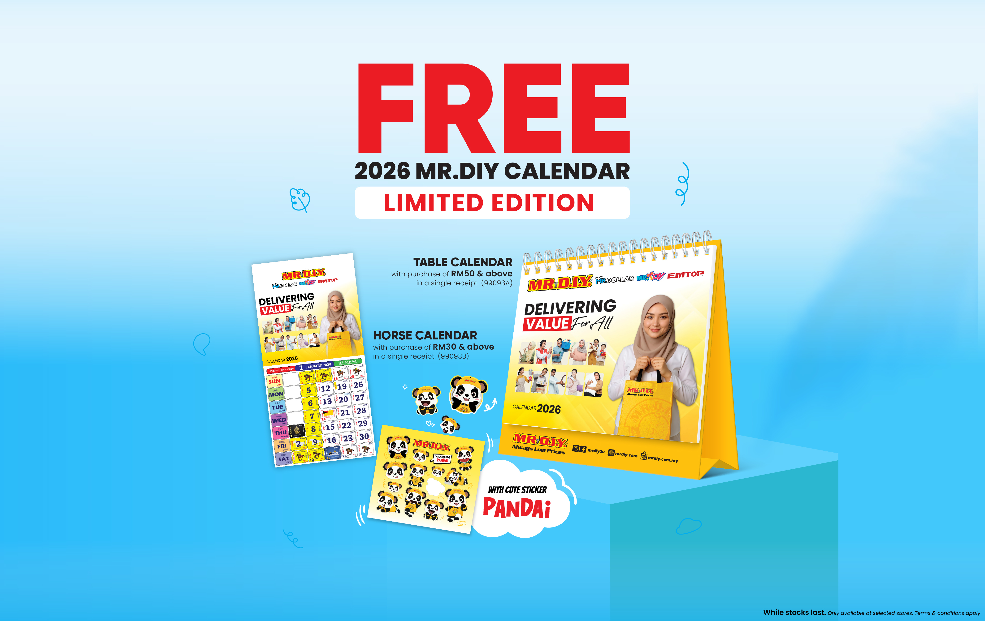 Spend RM50 in a single receipt to receive a FREE MR D.I.Y. 2026 Table Calendar.